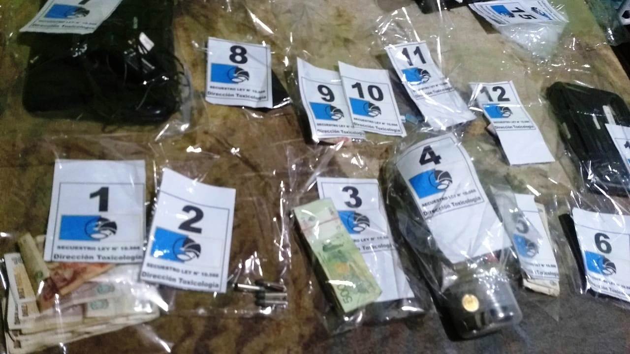 Diferentes cantidades de cocaína y marihuana fraccionada para su comercialización y venta, una importante cantidad de dinero en efectivo, en moneda nacional y extranjera, aparatos de telefonía celular, soportes de almacenamiento, un revólver calibre 38 y cartuchos de diferentes calibres, elementos de corte y estiramiento de sustancias estupefacientes, entre otros objetos que fueron hallados y puestos a disposición de la justicia interviniente.