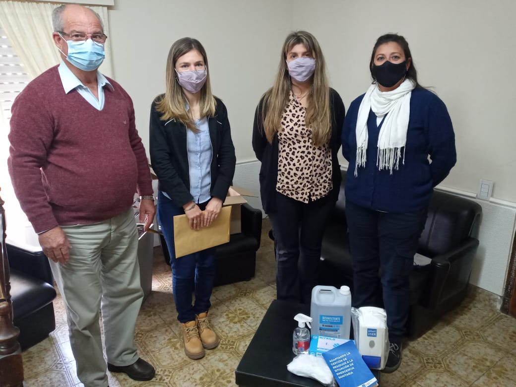En la mañana de ayer, lunes 6 de septiembre, recibimos en el municipio la presencia en representación de la Facultad de Ciencias de la Salud – UNER de la Mg. Martina Villanova, directora del proyecto denominado “Gestión de residuos en tiempos de emergencia sanitaria: Representación de un índice de vulnerabilidad vinculado a Covid-19 en un entorno de SIG”, quien hizo entrega a la Lic. Marisa Boffelli, responsable del Área de Ambiente un kit de higiene para ser asignado al sistema de saneamiento básico municipal, en respuesta a la participación en el proyecto junto a otros 9 municipios de la región.
