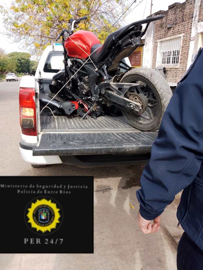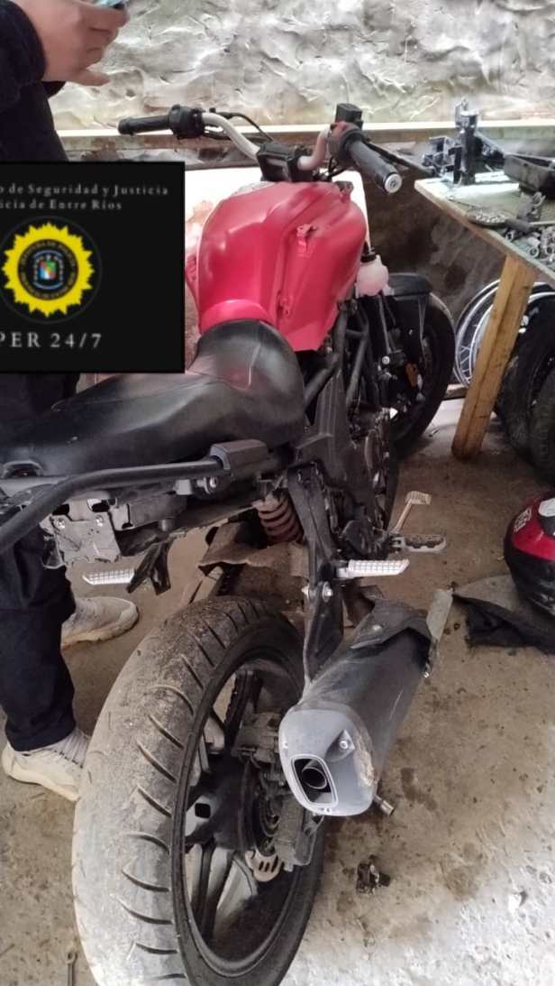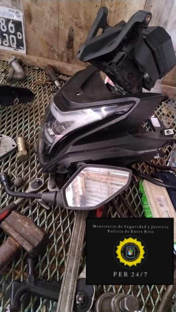 Por razones de jurisdicción, pasado el mediodía, uniformados de Comisaría Segunda realizan un procedimiento en un domicilio ubicado en calle Sarmiento, entre sus pares Dr. Tófalo y Blanchet, donde tras notificar a su morador de 25 años de edad, procedieron al secuestro del motovehículo en cuestión, el cual ya se encontraba en parte desarmado.