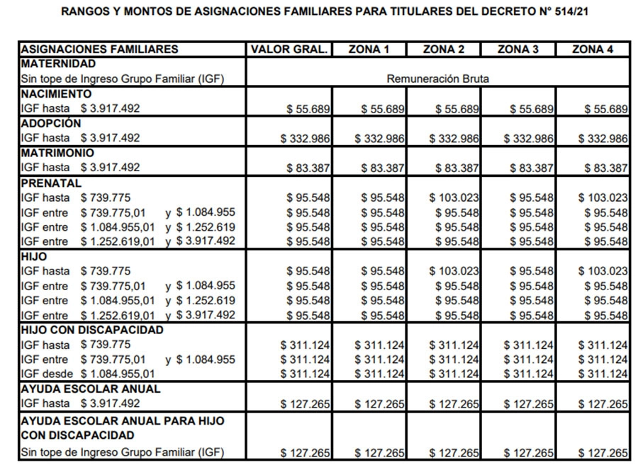 La resolución del Gobierno además establece que los grupos familiares en los cuales una persona del grupo familiar percibe ingresos superiores a $1.958.746, quedarán excluidos del cobro de estas asignaciones. Lo mismo ocurre cuando suma de sus ingresos de los integrantes de la familia superen el límite máximo de ingresos establecido que es de $ 3.917.492.